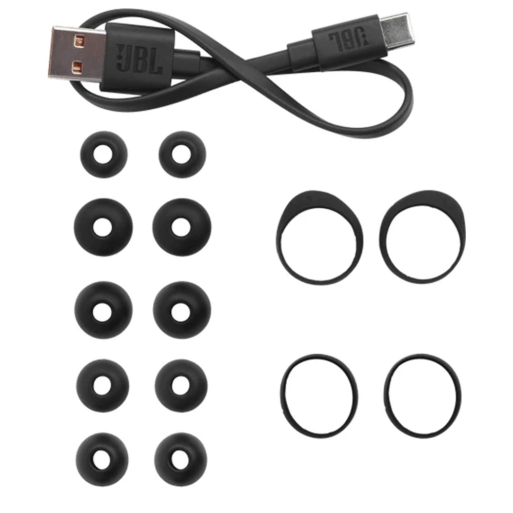 - 1 пара наушников JBL Tour Pro+ TWS 1 зарядный кабель USB-С 1 чехол с функцией зарядки Амбушюры 5 разных размеров Стабилизаторы 2 разных размеров 1 гарантийный талон/предупреждение (W / !) 1 руководство по быстрой настройке изделия/1 руководство по настрой